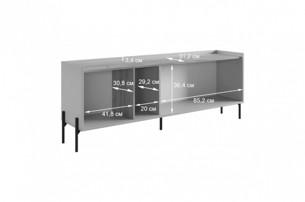 Стильные металлические ручки придают тумбе современный и модный вид. Открытая ниша обеспечивает легкий доступ к вещам, которые вы используете часто, или может служить пространством для размещения медиа-устройств.