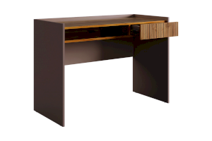 Корпус стола выполнен в цвете кашемир, что придает ему современный и спокойный вид, легко сочетающийся с любым интерьером. Выкатной ящик в цвете "дуб крафт золотой", декорирован принтом, имитирующим вертикальную фрезеровку, что добавляет столу уникальности и роскоши.